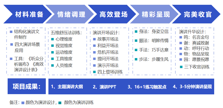運用“五大沉浸式收官法”進行演講的收官訓練。
