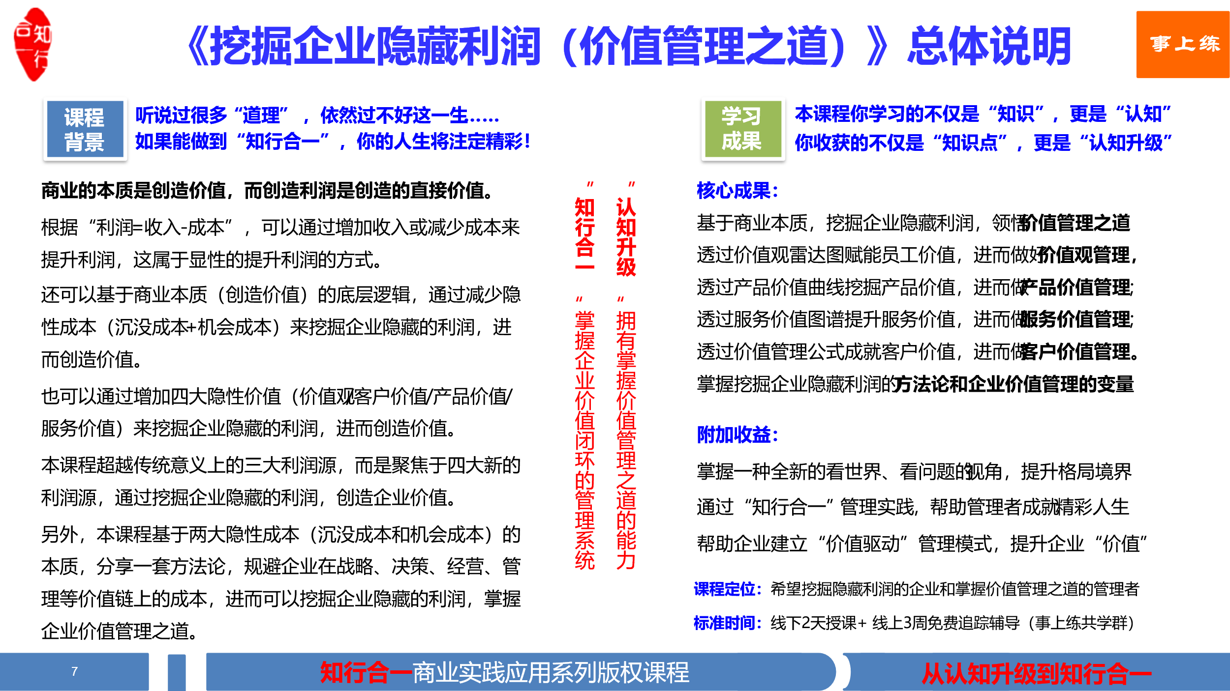 知行合一版權(quán)課--《挖掘企業(yè)隱藏利潤(價(jià)值管理之道)》課程大綱(2024版)